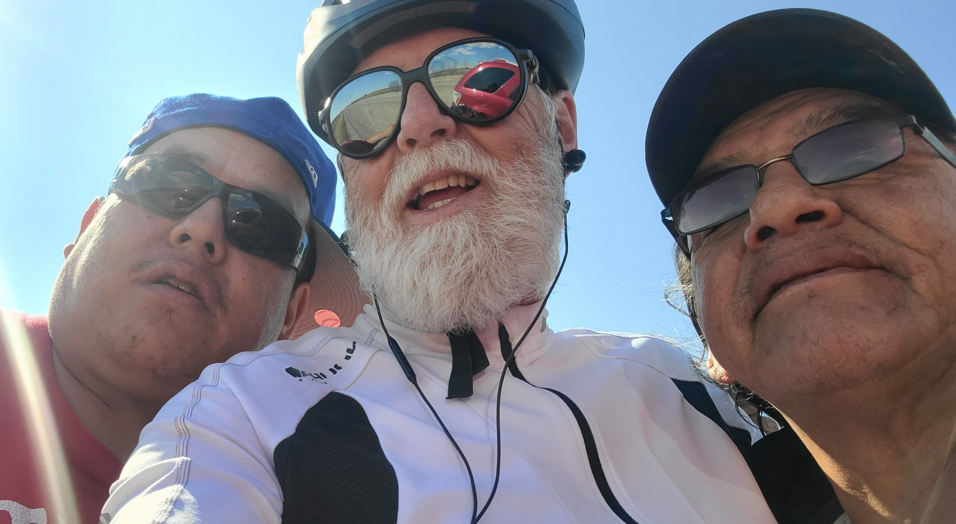 Jeremy and Gilbert are two members of the Dakota First Nation. Now at the side of the road we continue our conversation which initially focuses on what I’m doing. Eventually we get into a discussion about Reconciliation, Residential Schools and apartheid in South Africa. They noted that they were surprised Canadians knew little about residential schools and the fact that the last residential school closed just 25 years ago in 1996. I make mention of the fact that while most Canadians are appalled about apartheid in South Africa few would know that it was based in part on the reservation system in Canada. We end our discussion with a group photo. Jeremy and Gilbert head on their way and I continue to cycle to Souris.