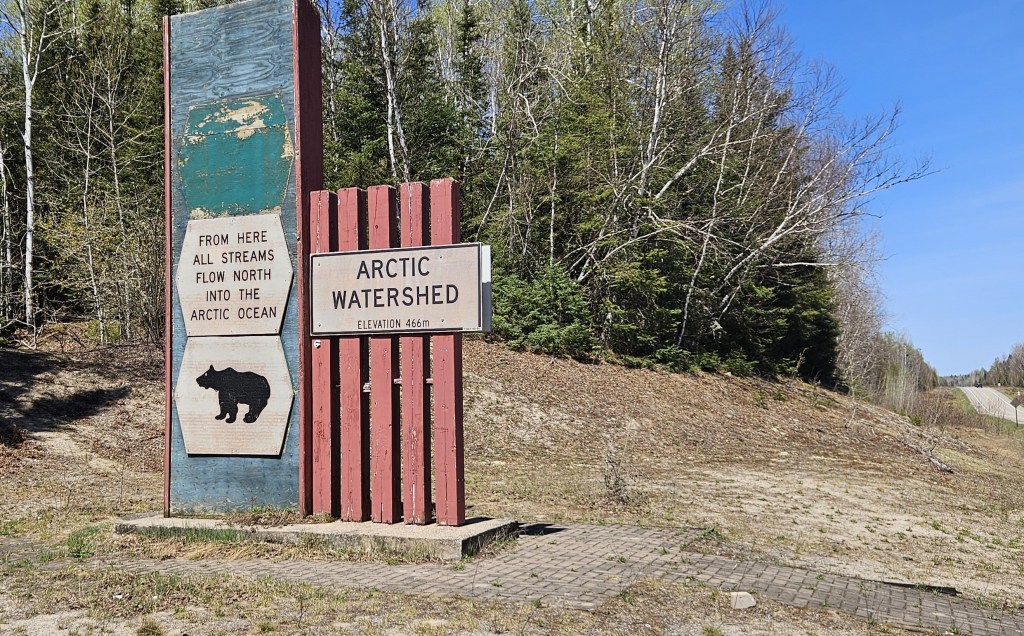 At one point on highway 129 to Thessalon you come across the point there the rivers flow in two different directions. Those on the one side flowing to the Atlantic while the other side flowing to the Arctic. This is something I learned in grade 7 or 8 geography but haven’t thought about since.