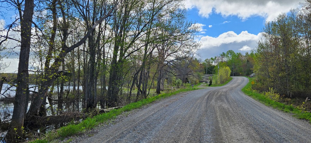 Today I set off from the Lakeside Campground in Thessalon on the Great Lakes Waterfront Trail. It follows the main road, highway 17B, out of town, crosses the Trans-Canada and heads back along highway 129. Not more than 4-5 km up highway 129 the trail turns onto a side road heading parallel to the Trans-Canada. The road is asphalt but eventually turns to gravel and over the course of the ride from here to Blind River it continues to alternate between the two surfaces. The worst are the sections of gravel that have developed ridges every few inches that shook both bike and rider. The signage for the Great Lakes Waterfront Trail is great and there is very little traffic, in fact I don’t think I saw more than a dozen vehicles the whole way. The scenery is also great. One of the nice things about cycling, especially on back roads is allowing yourself to just slow down and really appreciate your surroundings.